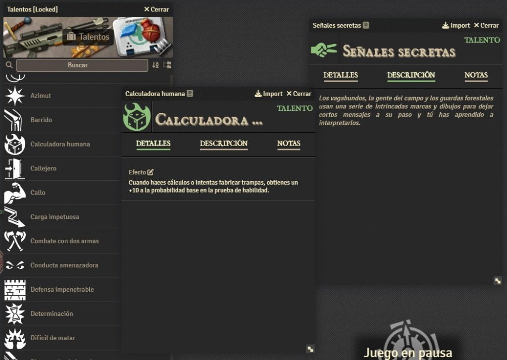 Se pueden realizar tiradas de habilidad con los modificadores habituales del sistema de juego. También se pueden hacer tiradas de Estrés y, en caso de fallo, calculará la pérdida de Estrés de forma automática.